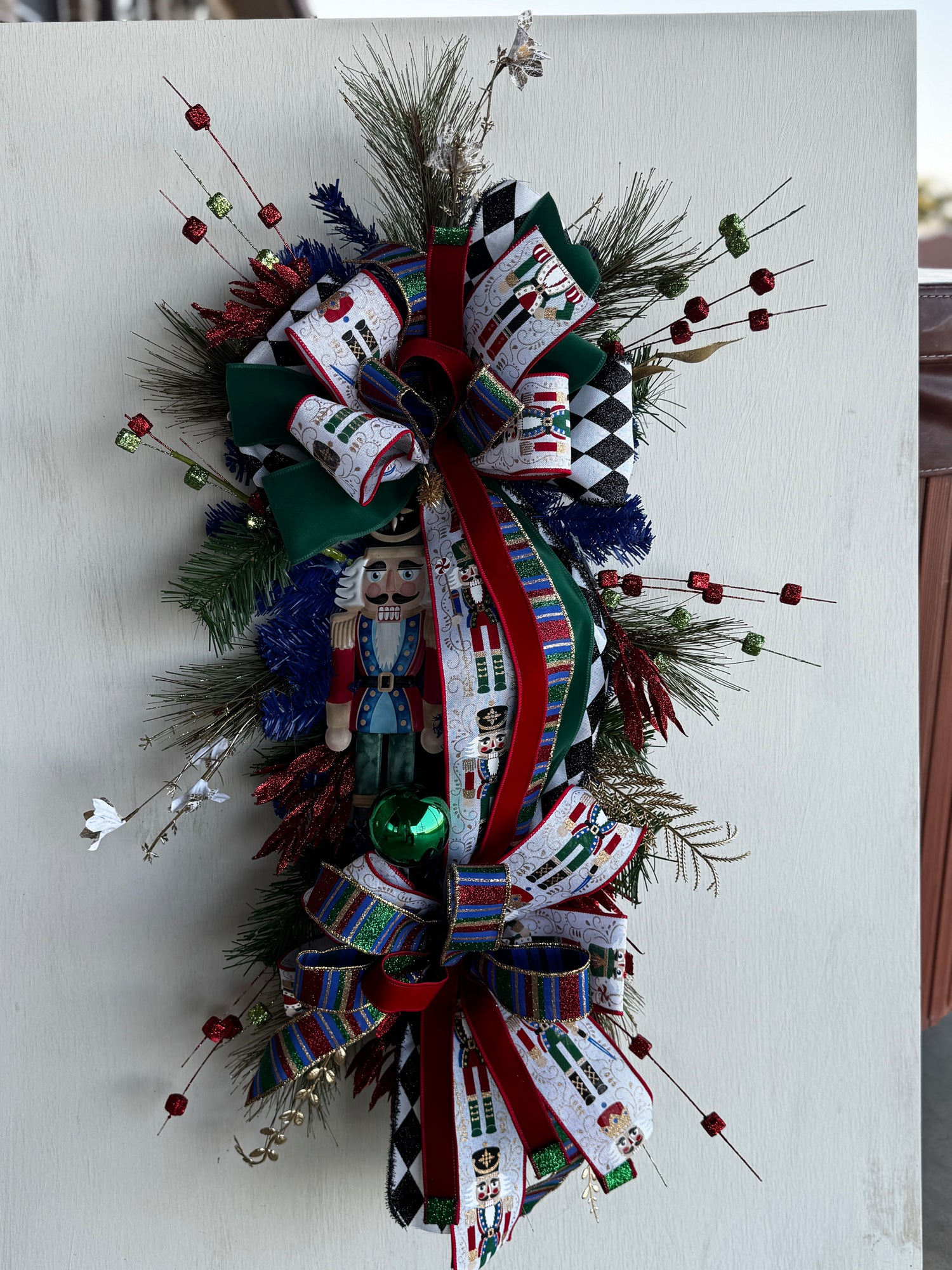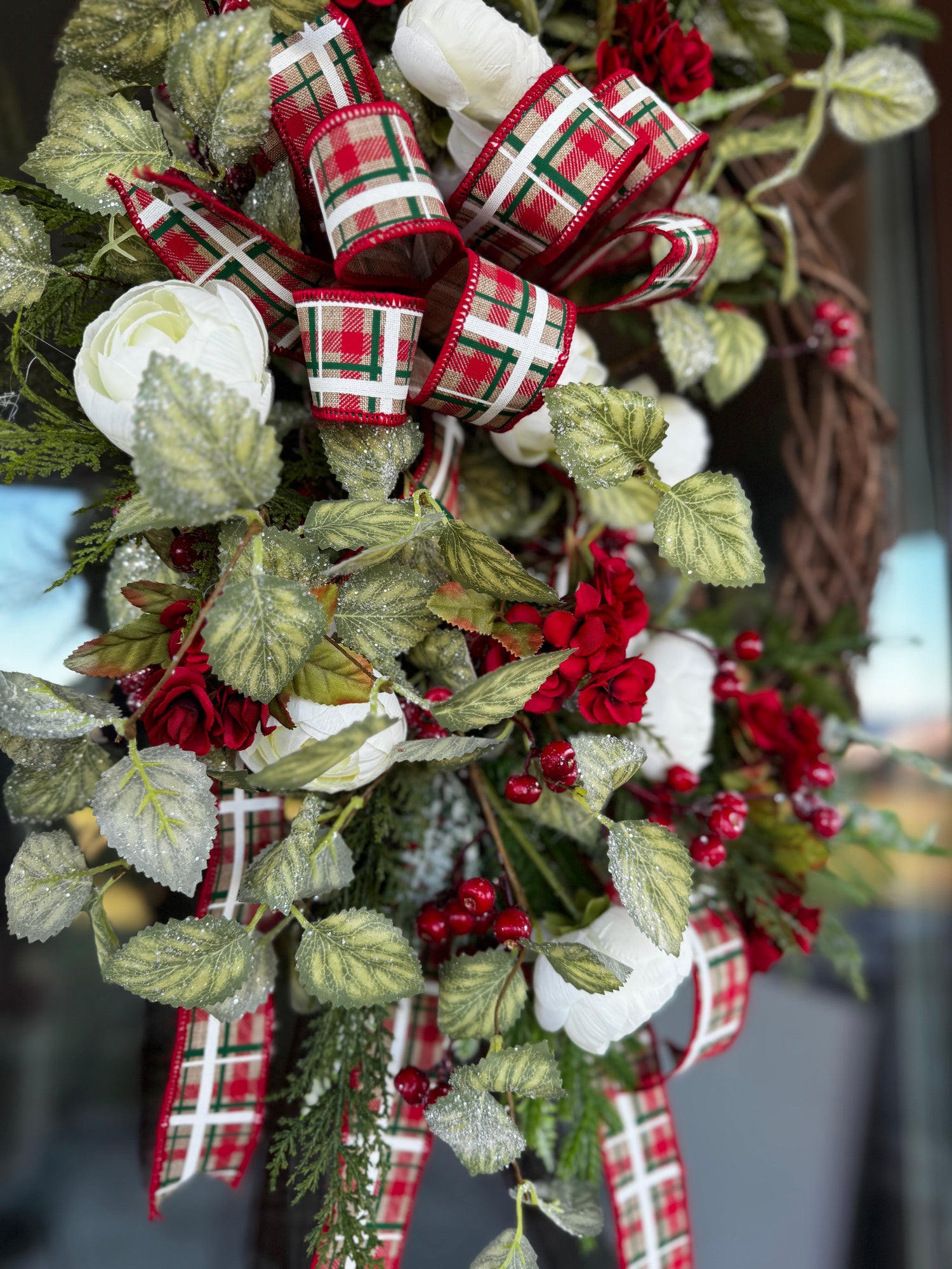 Classic Red & White Christmas Teardrop Swag – Elegant Holiday Door Decor